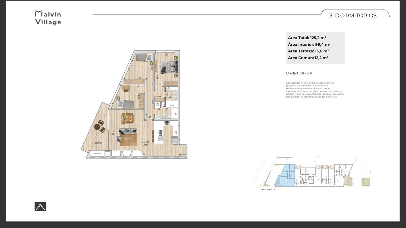 Malvín Village ofrece apartamentos de 1, 2 y 3 dormitorios, todos con terraza y parrillero individual, asegurando un estilo de vida exclusivo y lleno de comodidad.