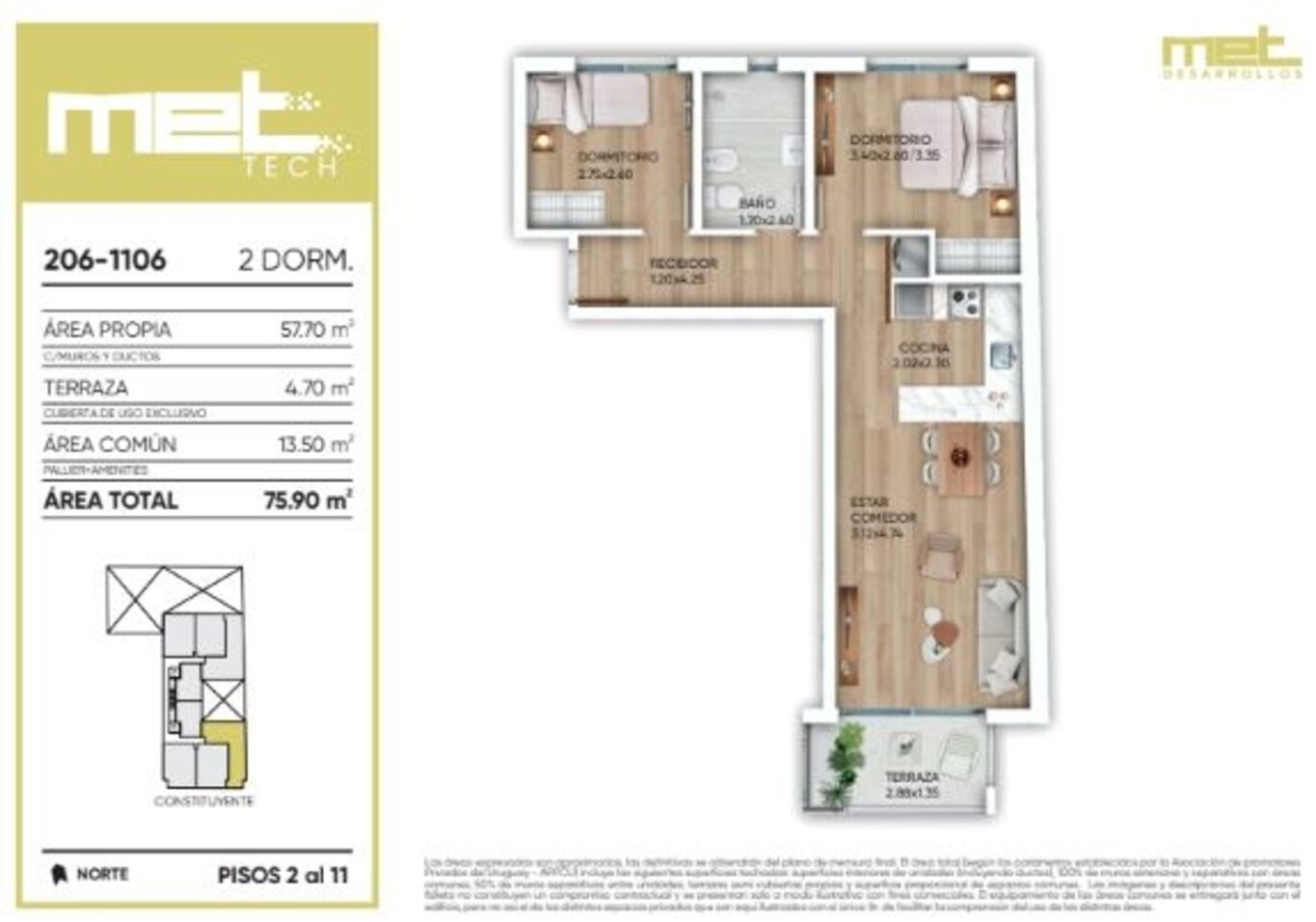 n Equilibrio Propiedades te presentamos MET TECH, un proyecto disruptivo ubicado en el corazón del Cordón, sobre Constituyente entre Magallanes y Gaboto. Una zona que vive un proceso de transformación constante, rodeada de diseño, gastronomía, cultura universitaria y conectividad total con el resto de la ciudad. Vivir o invertir aquí significa estar cerca de todo: Parque Rodó, Tres Cruces, Pocitos, Punta Carretas y el Centro, en minutos.El edificio se desarrolla en 13 pisos con 93 unidades entre monoambientes, 1 y 2 dormitorios, diseñadas con líneas contemporáneas y excelente calidad constructiva. Los apartamentos se entregan con horno eléctrico empotrado, anafe y placares instalados, ofreciendo practicidad, estética y un gran valor agregado desde el primer día. Los espacios son luminosos, funcionales y pensados para la vida moderna.