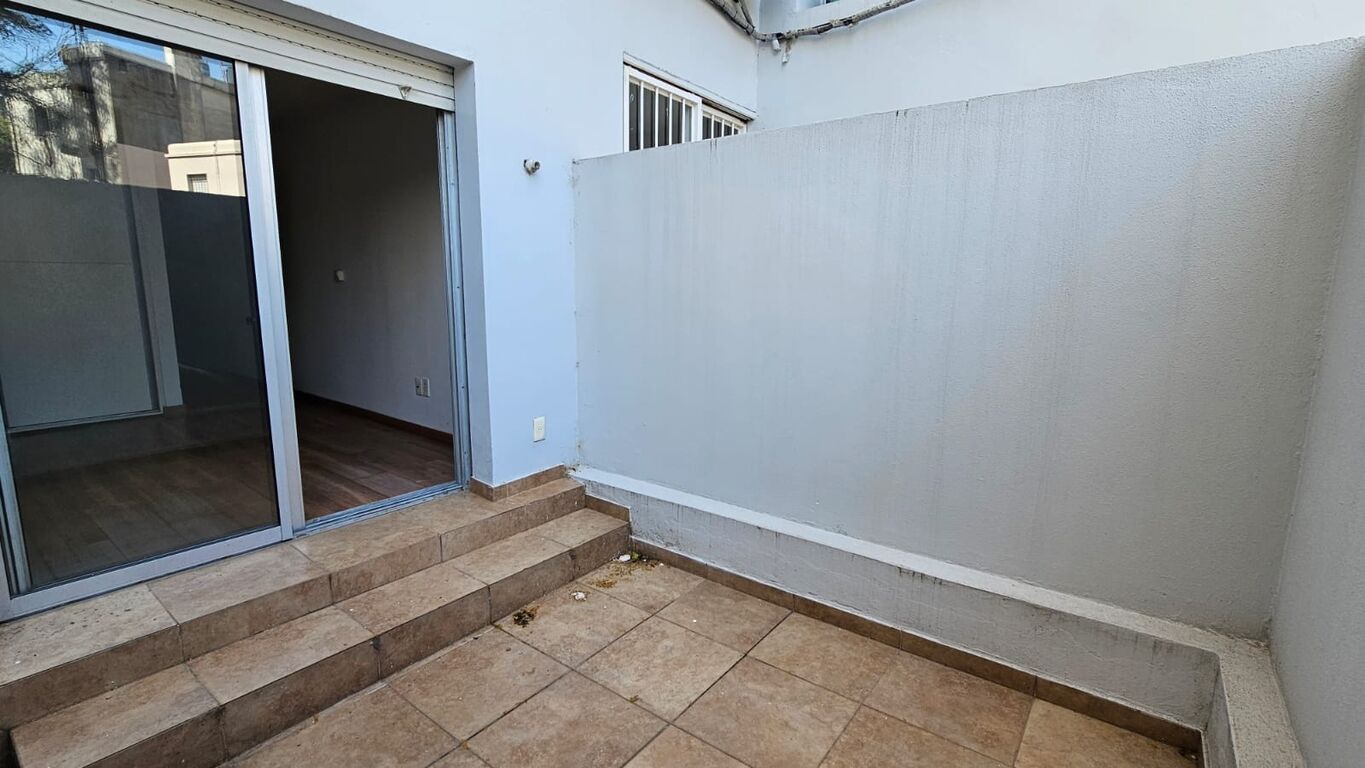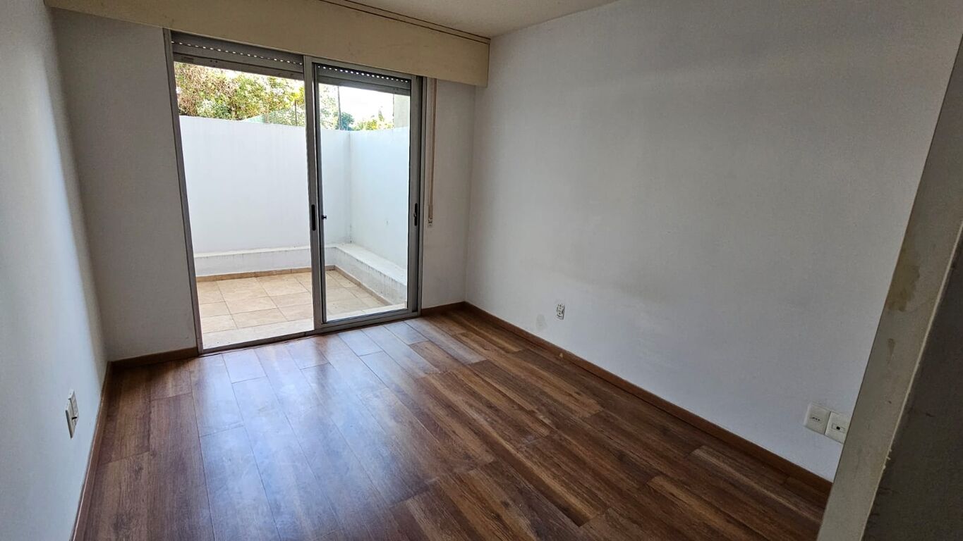 Dormitorio al contrafrente con placard empotrado y acceso a un patio exclusivo, ideal como desahogo.