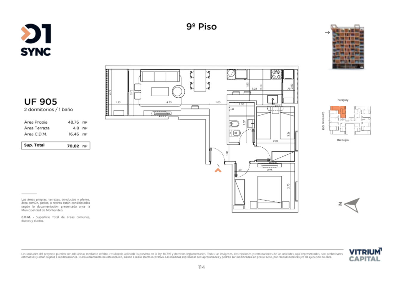 Apartamento de dos dormitorios a estrenar ubicado en excelente punto, en el límite de Barrio Sur y Centro - Canelones y Río Negro. A pasos de la Rambla, Cordón y Ciudad Vieja.Unidad 801 en piso 8 . Ubicada en la torre Sur con vista a la rambla. Aberturas de aluminio anodizado con doble vidrio en terraza. Piso de porcelanato en el baño y vinílicos simil madera en dormitorios, living comedor y cocina. . Cocina con doble mesada de granito, pileta de acero inoxidable y muebles bajo mesada.