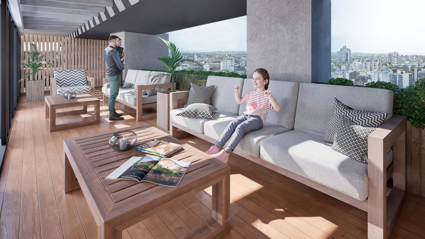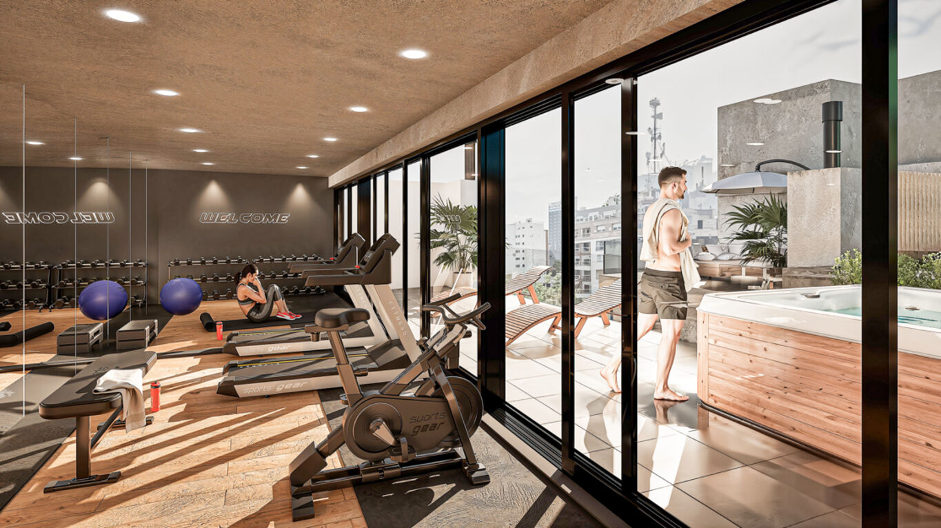Amenities: sala de cowork, gimnasio, rooftop con parrillero y sum con parrillero.